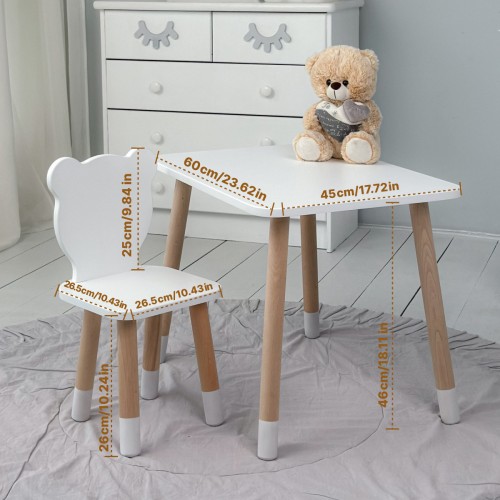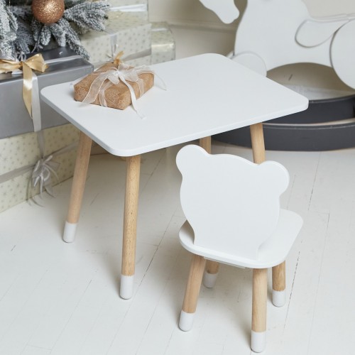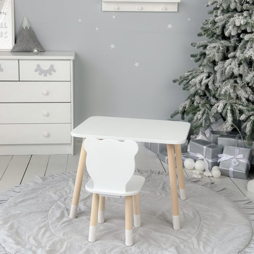 Стіл прямокутний 46х60х45 і стілець медвежа 26.5х26х25, столик та стільчик в дитячу, білий