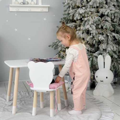Дитячий прямокутний стіл і стільчик білосніжний ведмежа. Столик білий дитячий