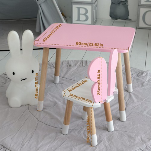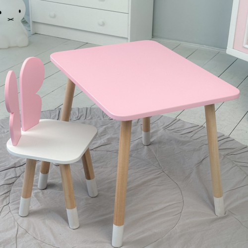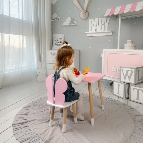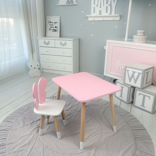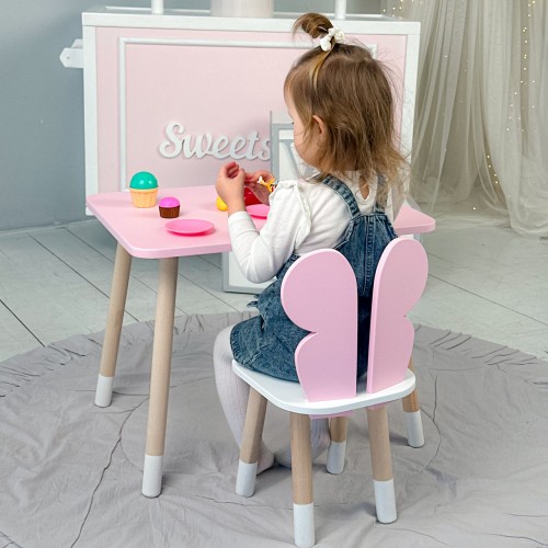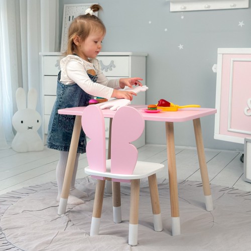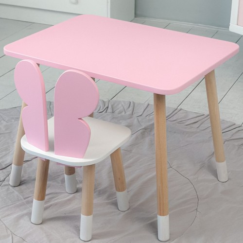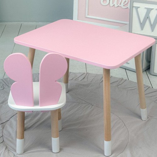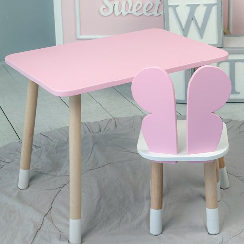 Стіл прямий 46х60х45 і стілець крильця метелик 26.5х26х25, столик та стільчик для дівчинки, рожевий з білим