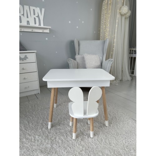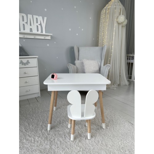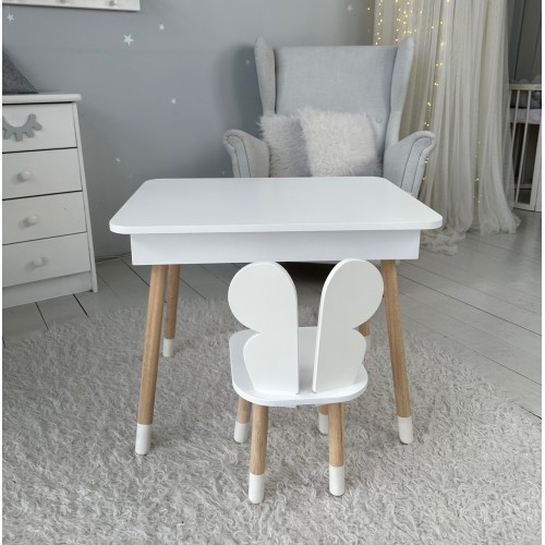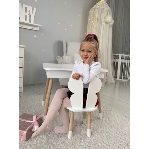 Дитячий столик і стільчик метелик білий. Столик із нішею для олівців і розмальовок