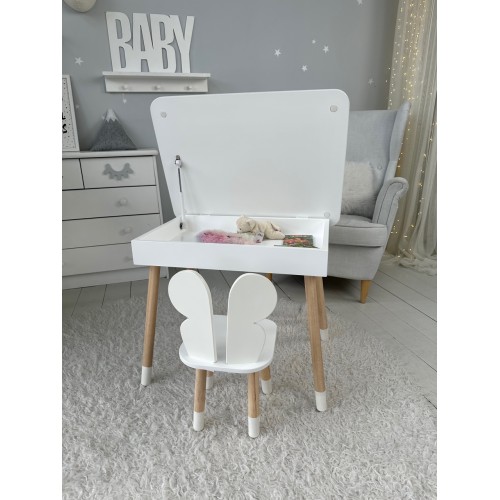 Столик з відкидним верхом 53х60х45 і стільчик метелик 26.5х26х25, стіл та стілець для злопчика від 1 року, білий