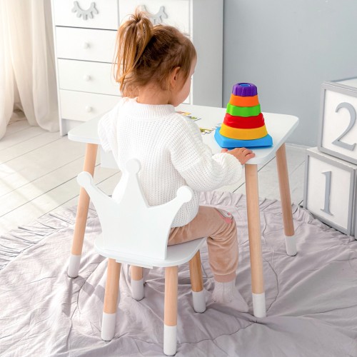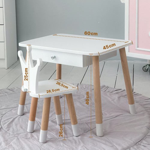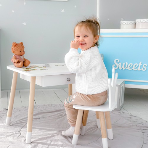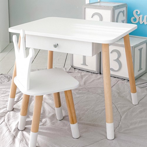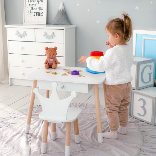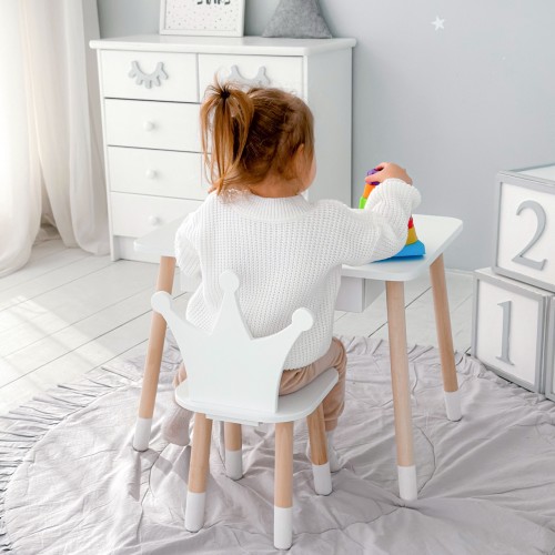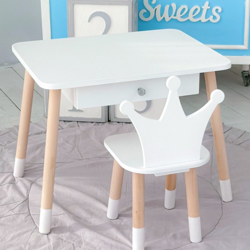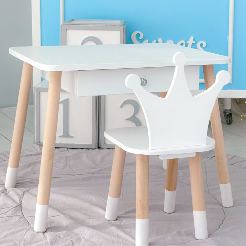 Стіл прямокутний з ящиком для речей 46х60х45 і стілець корона 26.5х26х25, столик та стільчик в дитячу, білий