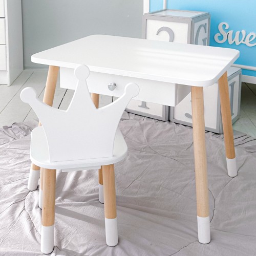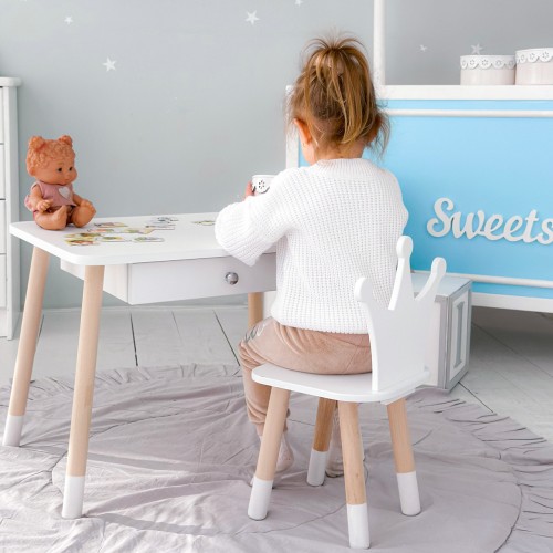 Дитячий столик і стільчик корона білий. Столик із шухлядою для олівців і розмальовок 66928