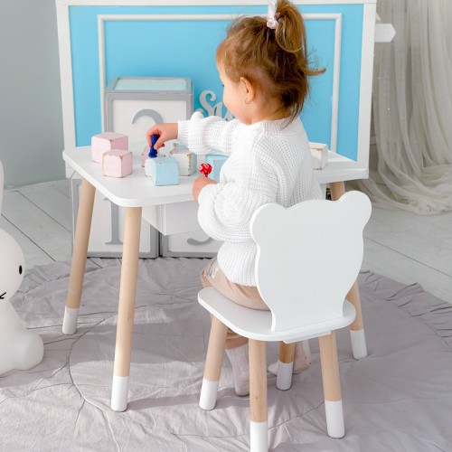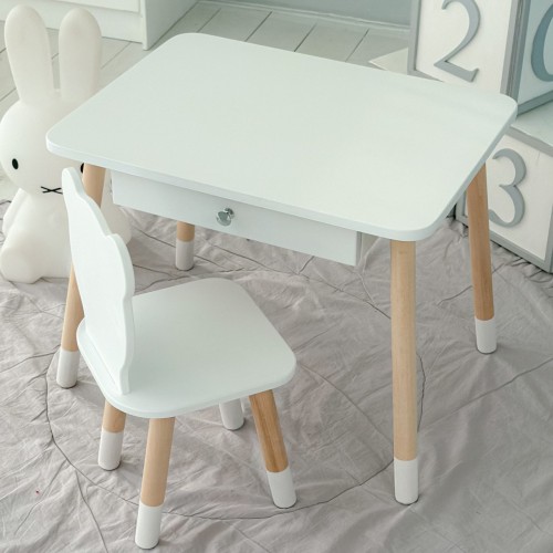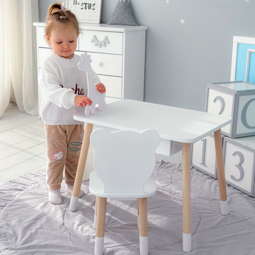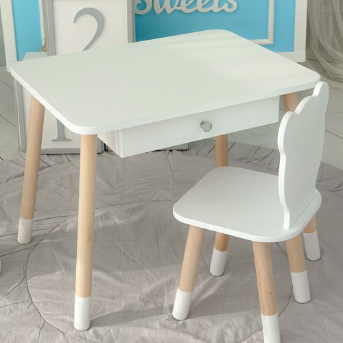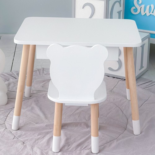 Стіл прямокутний з висувним ящиком 46х60х45 і стілець медвежа 26.5х26х25, столик та стільчик в дитячу, білий
