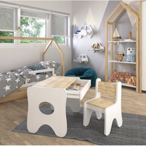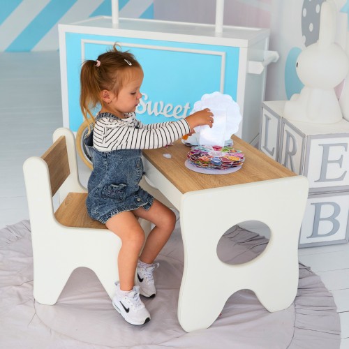 Столик та стільчик для дитини 70×45×51, дитячий гральний стіл та стілець, білий з деревом