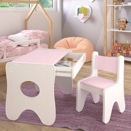 Набір дитячих меблів столик з ящиком та стільчик 70×45×51, стіл та стілець для дітей, білий з рожевим