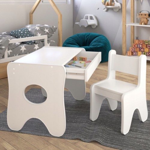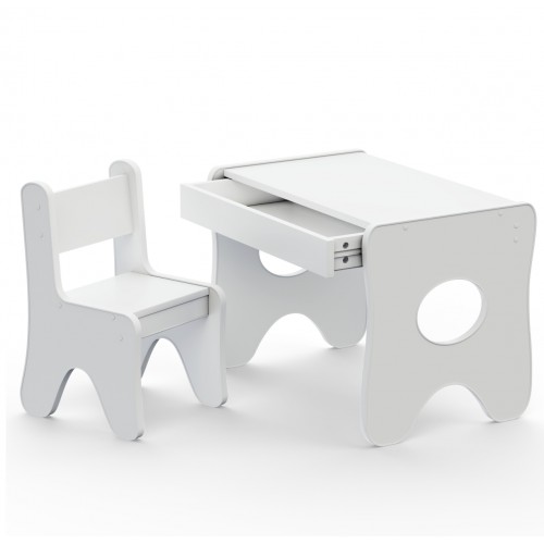 Набір дитячих меблів столик з ящиком та стільчик 70×45×51, стіл та стілець для дітей, білий