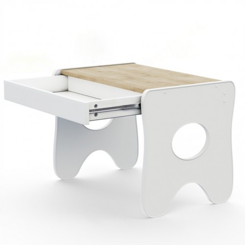 Зручний столик в дитячу кімнату 70×45×51, дитячий гральний стіл з шухлядкою, білий з деревом