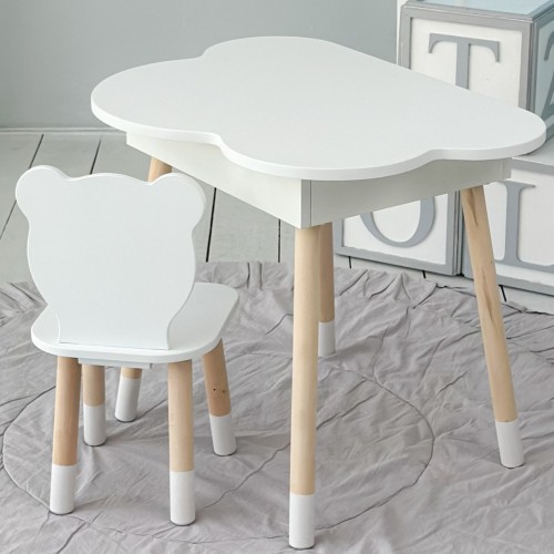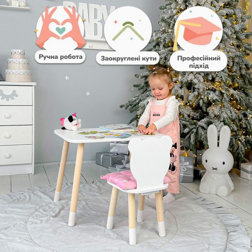 Ви можете зібрати повноцінний комплект – столик зі стільчиком в єдиному стилі. Такий набір стане зручним і практичним рішенням для дитячої кімнати, забезпечуючи малюкові комфортне місце для занять та ігор.