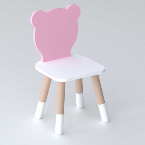 Дитячий стільчик ведмедик 26.5х26х25см, стілець для дитини, білий з рожевим
