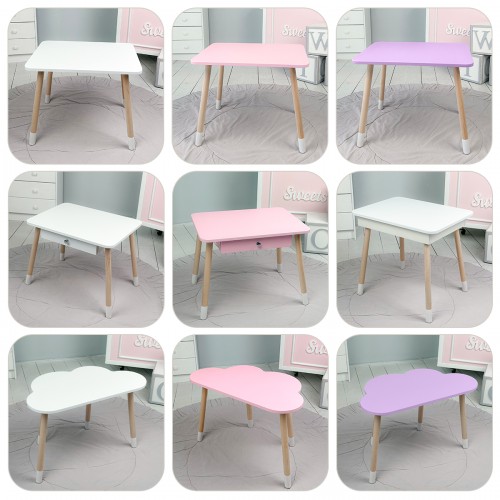 Практичний прямокутний столик із натурального дерева та МДФ, створений спеціально для дітей. Безпечний, зносостійкий та зручний у використанні.