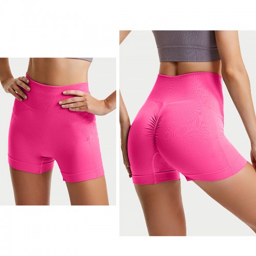 Шорты женские 1802# бесшовные для фитнеса пуш ап push up Розовый электрик S