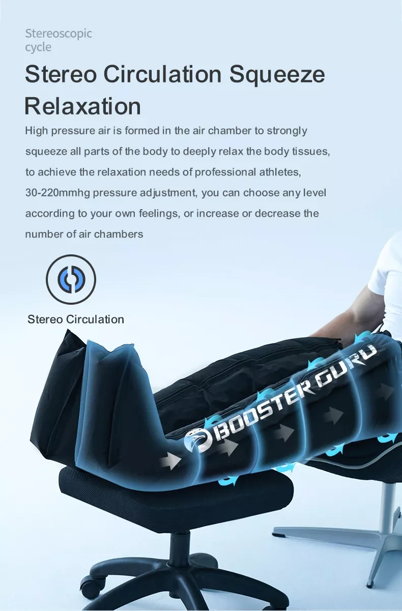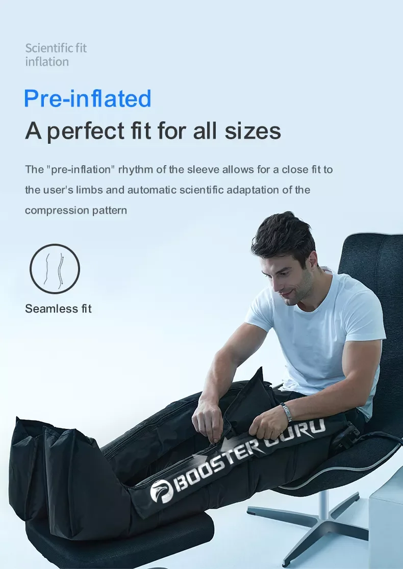 Незалежно від того, чи займаєтеся ви в тренажерному залі регулярно чи не, ви готуєтесь, на змаганнях або гонках у вас опухлі ноги в результаті частих поїздок, роботи, що вимагає багатогодинного стояння, або у вас запалення або біль у м'язах Recovery Guru покращити кровообіг, збільшити рухливість чи просто швидше освіжити ноги