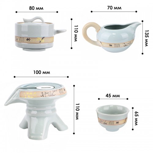 Набор для чайной церемонии для приготовления чая гайвань пиалы с чайником на 6 персон #07 Шепот бамбука