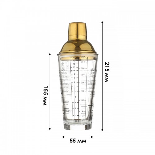 Шейкер для коктейлей KM-40G стеклянный 400 мл Gold