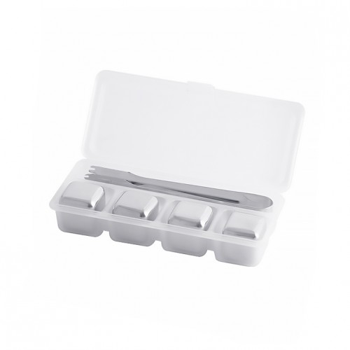 Набор охлаждающих кубиков для напитков. Серебряного цвета в удобном футляре с щипцами. Изготовленные из нержавеющей стали, эти кубики - настоящее искусство в бокале.
