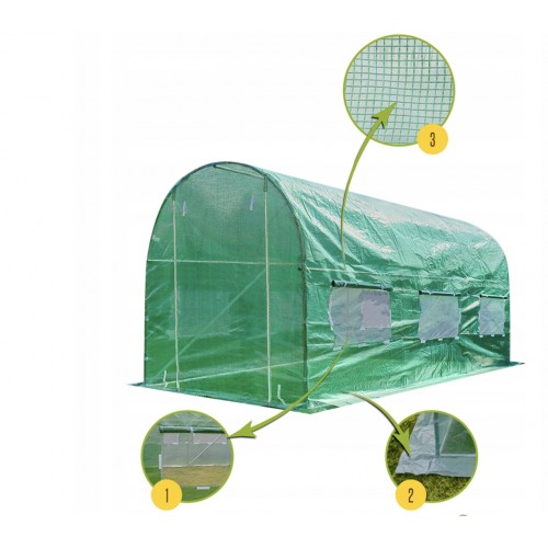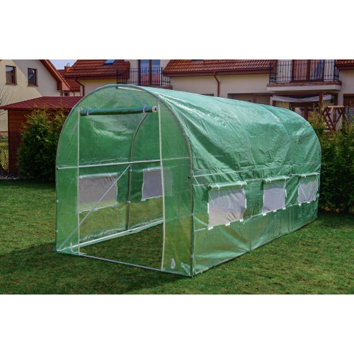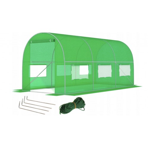Садова теплиця 9 м² (4,5 × 2 × 2 м) з вікнами, армована плівка UV-4, Зелена (Польща)
