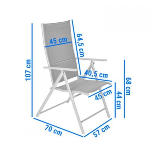 Стильний та практичний садовий стілець MODENA — ідеальне рішення для відпочинку на терасі, балконі, у саду чи на дачі. Завдяки легкому, але міцному алюмінієвому каркасу він поєднує мобільність, стійкість і довговічність. Сидіння та спинка виготовлені з якісного зносостійкого матеріалу textilene, який добре пропускає повітря, швидко висихає та не втрачає вигляд під впливом погодних умов. Стілець легко складається, займає мінімум місця при зберіганні та оснащений підлокітниками й регульованою спинкою з 8 положеннями нахилу, що дозволяє обрати максимально комфортну позицію для відпочинку.