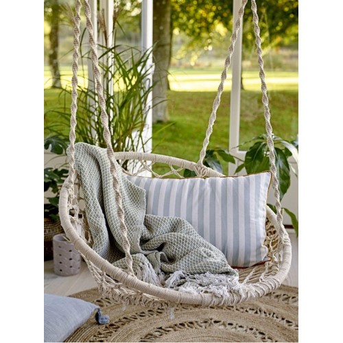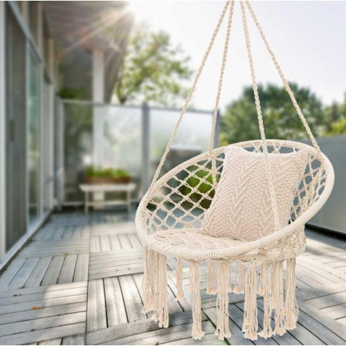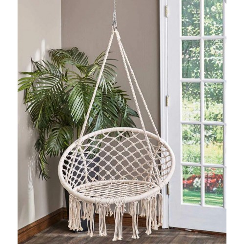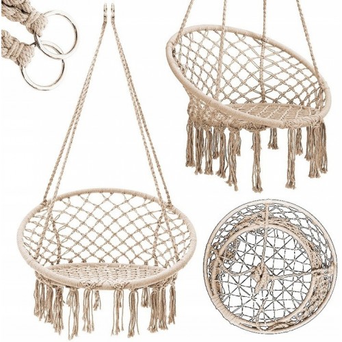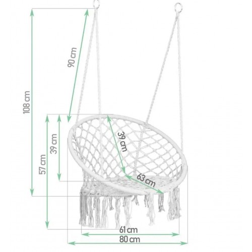 Унікальне підвісне ажурне крісло і гойдалка, які стануть унікальним предметом меблів у вашому домі. Його можна повісити в приміщенні, на терасі або в саду. Він зробить будь-який інтер'єр привабливішим, декоративні плетіння і бахрома підкреслять сучасний дизайн і дадуть змогу розслабитися з улюбленою книжкою або музикою. Виріб має багато застосувань, ми можемо повісити його на вулиці в саду, на балконі, але також і всередині - у вітальні або в спальні, гойдалка додасть кімнаті сучасного стилю; її можна використовувати і в дитячій кімнаті, вона стане у пригоді багатьом мамам, які годують дитину або засинають гойдаючись на руках. Щоб продовжити термін служби гойдалок під час несприятливих погодних умов, гойдалки необхідно ховати. Особливості: Гойдалку можна складати, що дає змогу брати її в подорож - відпочинок із видом на море/гори з ранковою кавою зробить гойдалку ще приємнішою. Прекрасне доповнення інтер'єру будинку або квартири Міцний каркас із заліза обтягнутий мотузкою, завдяки чому кожен елемент закріплений - гойдалкою можуть користуватися як дорослі, так і діти. Ідеально підійде в саду або на терасі Момент розслаблення в кріслі-гойдалці на балконі теж звучить здорово! Характеристики: Рама: сталева рама з порошковим покриттям Матеріал каната: 65% поліестер, 35% бавовна Розміри: Висота: 120 см Ширина: 80 см Глибина: 60 см Максимальне навантаження: 150 кг