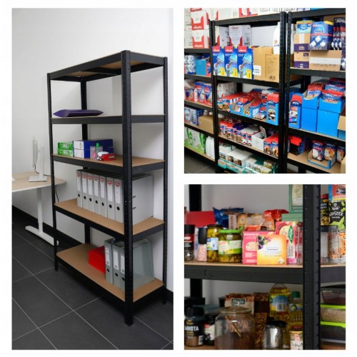Стійкий стелаж із п'ятьма полицями – відмінний товар для тих, хто любить порядок. Складання займає всього 15 хвилин. Можливість зміни відстані між полицями. Можливість зробити 2 полиці меншого розміру. Стелаж напресований. Використовуйте свій простір ефективніше!
