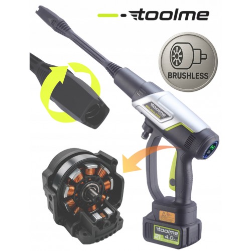 Акумуляторна мийка високого тиску Toolme TM280 PRO BRUSHLESS 450 Вт з алюмінієвою помпою, 2 АКБ 21В, піногенератор (Польща)