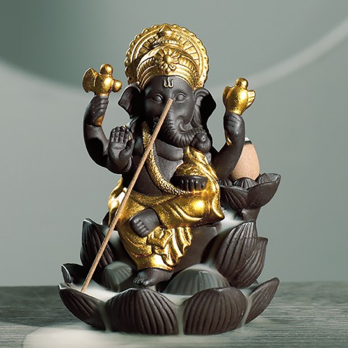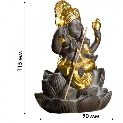 Подставка для благовоний 2019011002 Ганеша на Лотосе с обратным потоком жидкого дыма держатель для ароматических палочек и конусов Gold
