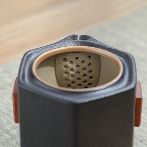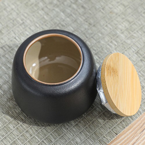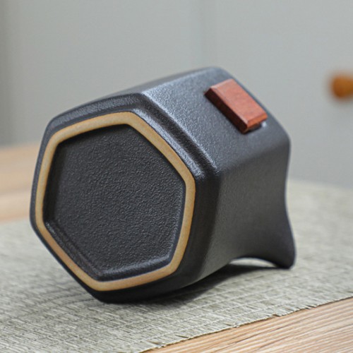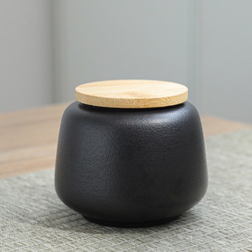 Герметичная керамическая банка с деревянной крышкой идеально подходит для сохранения аромата и свежести чая.