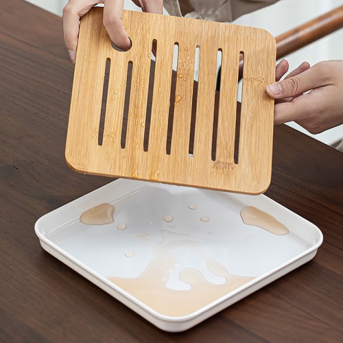Поднос создан, чтобы добавить атмосферу и изящество вашей чайной церемонии. Он служит не только для подачи, но и для создания особого места, где вы можете наслаждаться каждым скольжением чашки.