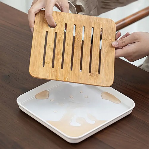 Поднос создан, чтобы добавить атмосферу и изящество вашей чайной церемонии. Он служит не только для подачи, но и для создания особого места, где вы можете наслаждаться каждым скольжением чашки.