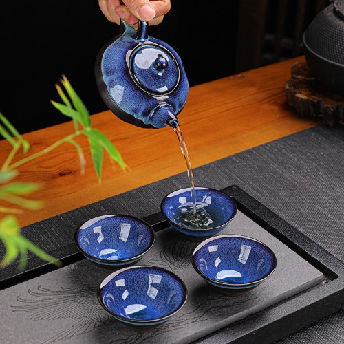 Набор для чайной церемонии YBCJ-647 сервиз для приготовления чая набор пиал с чайником на 4 персоны подарочная коробка Blue