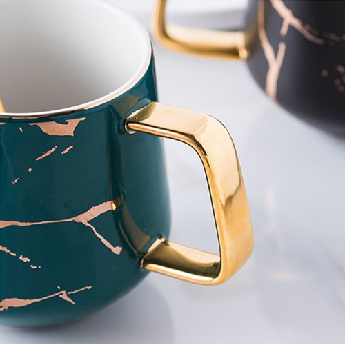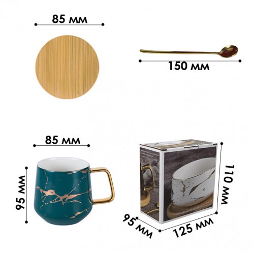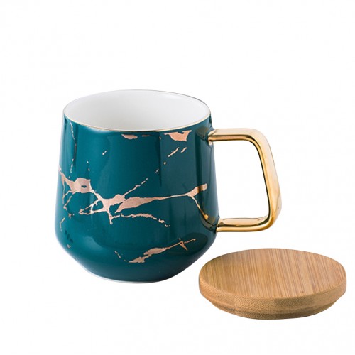 Чайная чашка A2024 з бамбуковою кришкою та ложкою золотой мрамор Green