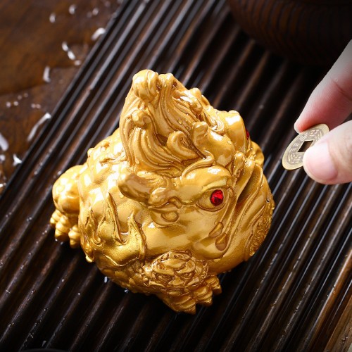 Фигурка для чайной церемонии ZBY-2407302 Жаба с монеткой меняющая цвет от горячей воды Gold