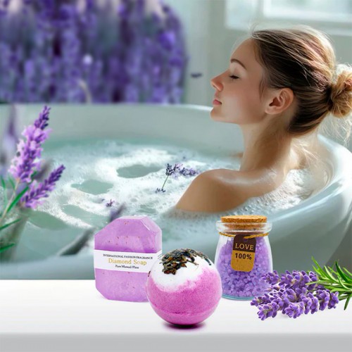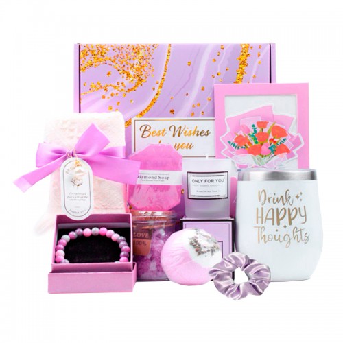Подарочный набор Spa Gift Basket Set 01 8 предметов термостакан мыло бомбочка соль для ванны ароматическая свеча открытка резинка браслет Violet