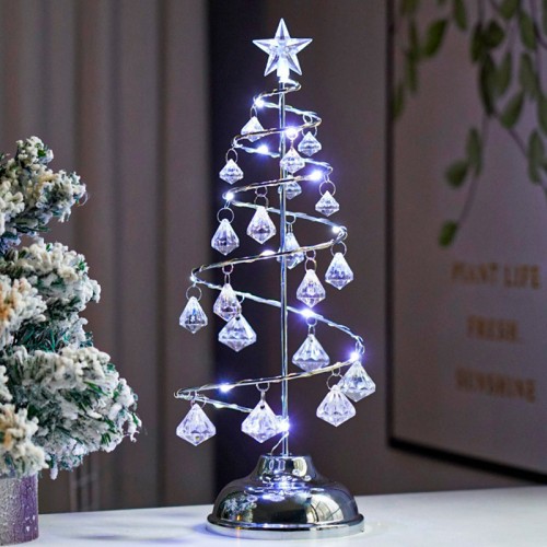 Настольная лампа-ночник SDS001 Хрустальная ёлочка от батареек декоративный светильник новогодний Холодный свет