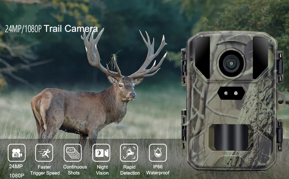 Фотоловушка робить фотографії з роздільною здатністю 24 МП і записує відео в якості 1080P, надаючи неймовірно чіткі і яскраві зображення, а також ясне аудіо/відео навіть вночі. Вбудований кольоровий ЖК-екран 2.0" дозволяє насолоджуватися спостереженням за дикою природою.