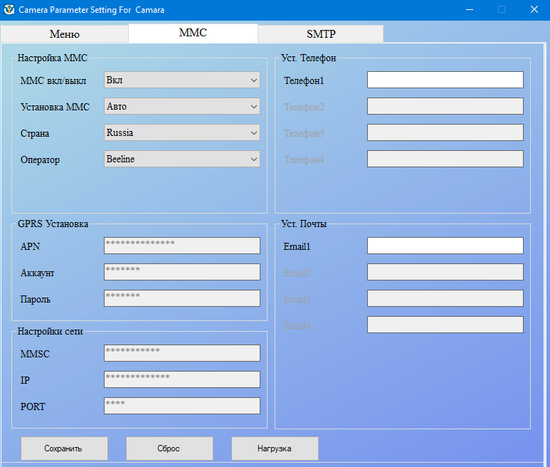 Для зручного налаштування камери можна використовувати програму для ПК. За допомогою цього параметра можна встановити основні параметри зйомки, а також налаштувати функцію надсилання фото на електронну пошту.