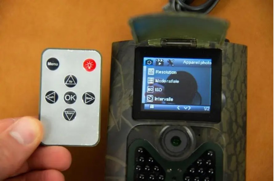 Пульт ДУ. За допомогою інфрачервоного пульта дистанційного керування можна змінювати деякі налаштування на фотопастці. Меню настройок відображається на кольоровому дисплеї.