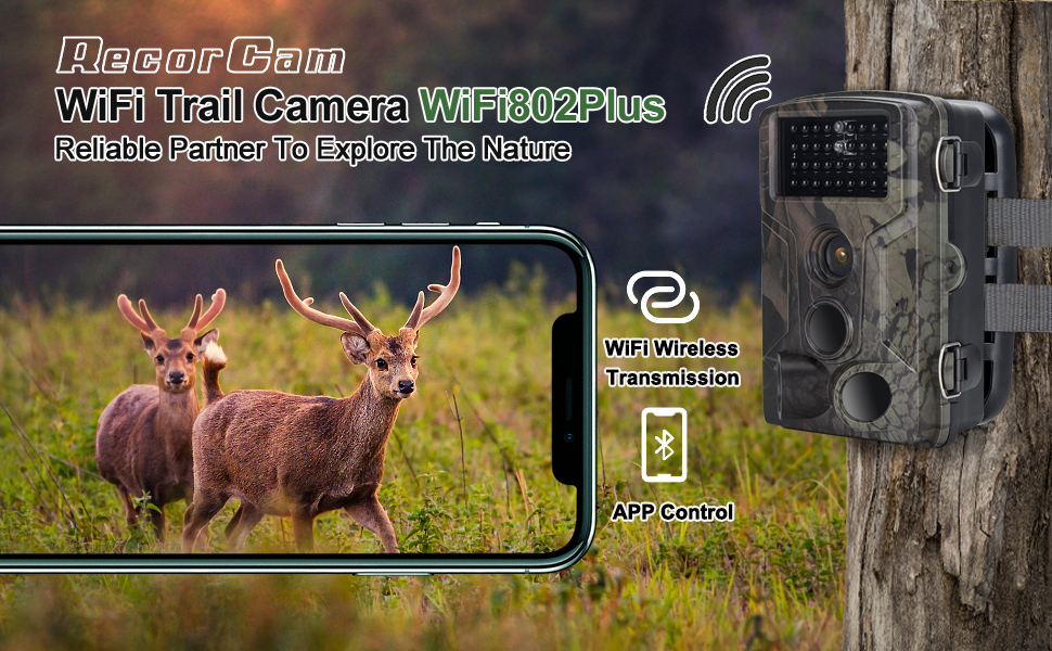 WiFi802Plus підтримує Wi-Fi, Bluetooth та програми WiFiCamera або TCAMPro, забезпечуючи передачу зображень та відео в реальному часі на відстань до 20 метрів. Ця фотопастка працює на 8 батарейках типу AA або від зовнішнього живлення 9V 1A DC та підтримує 12 мов, включаючи російську.