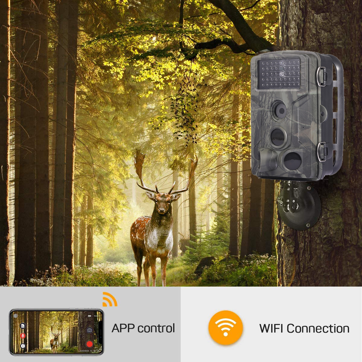 WiFi802Plus — це інноваційна фотопастка з функцією Wi-Fi для передачі даних. Вона забезпечує чіткі зображення та відео в будь-який час доби завдяки інфрачервоному нічному зйомці. За допомогою Wi-Fi ви можете отримувати дані безпосередньо на свій смартфон або комп'ютер. WiFi802Plus ідеально підходить для спостереження за природою, полювання або забезпечення безпеки вдома.