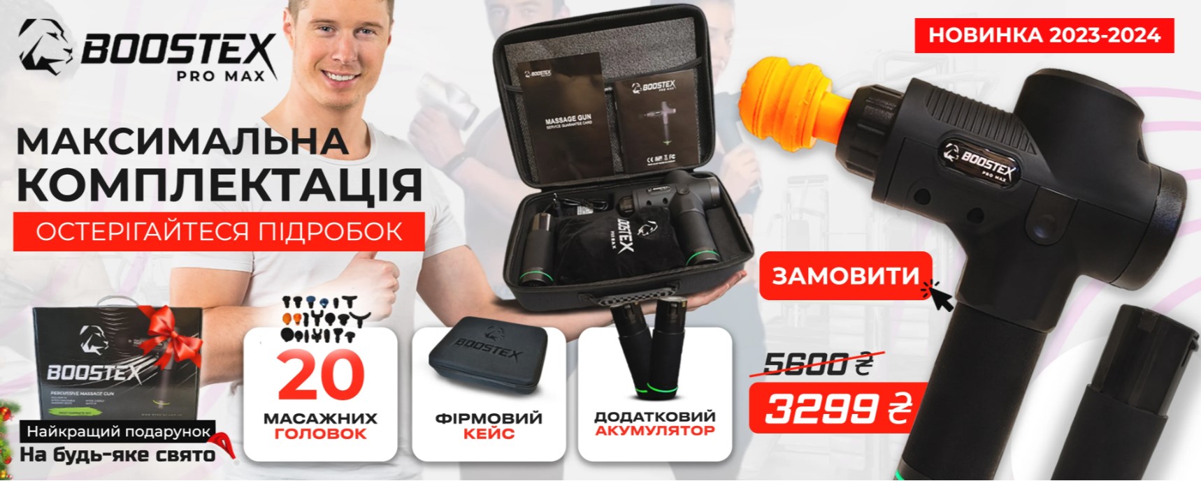 Удосконалений багатофункціональний 30-швидкісний вібраційний ударний масажер Boostex PRO MAX – новітня розробка в галузі масажу, яка допоможе зробити ваше тіло здоровішим, стрункішим і розслабитися. Масажний пістолет Boostex PRO MAX використовується для зменшення м’язової жорсткості та болісності, сприяє покращенню циркуляції крові та лімфи. Підходить як для особистого використання, так і для спортсменів. Масажер чудово допомагає відновитися після тренування та фізичних травм, також підходить для фізичної терапії. 21 змінна масажна насадка, яка входить у комплект, дозволяє масажувати та розслабити різні ділянки тіла. Використовуючи вібраційні пульсації та перкусію, масажний пістолет допоможе: