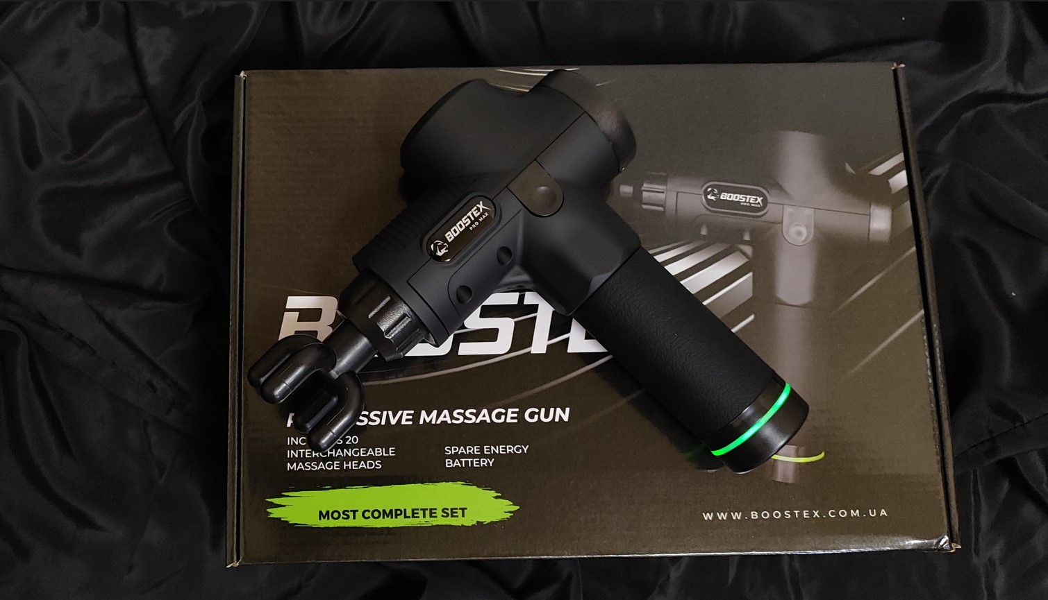 Удосконалений багатофункціональний 30-швидкісний вібраційний ударний масажер Boostex PRO MAX – найновіша розробка в області масажу, допоможе зробити ваше тіло здоровішим, стрункішим і допоможе розслабитися. Масажний пістолет Boostex PRO MAX використовується для полегшення м'язової жорсткості та хворобливості, сприяє циркуляції крові та лімфи. Підходить як для особистого користування, так і спортсменів. Масажер чудово впорається з відновленням після тренування та фізичних травм, також підійде для фізичної терапії. 21 змінних масажних головок, що йдуть у комплекті, дозволяють промасувати та розслабити різні ділянки тіла. Використовуючи вібруючі пульсації та перкусію, масажний пістолет допоможе:
