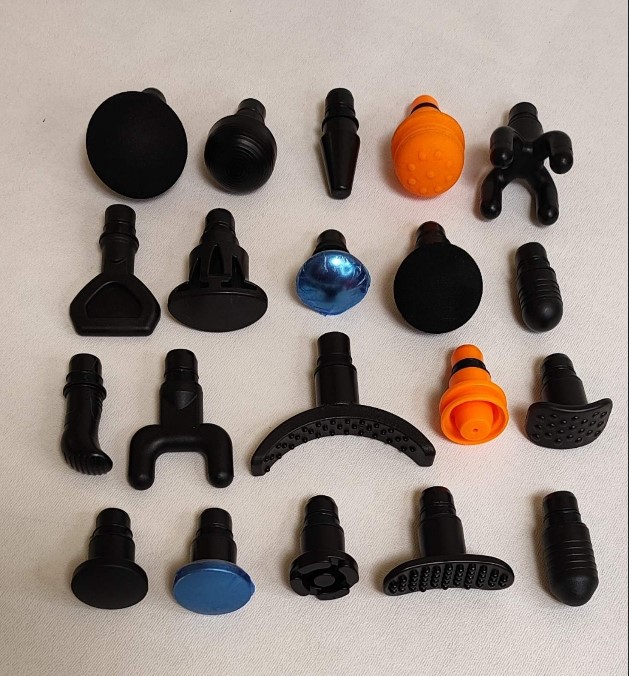 20 МАСАЖНИХ НАСАДОК . Ударний масажер комплектується 20 індивідуальними масажними насадками для досягнення більшого ефекту та перкусійні масажу певних м'язових груп: