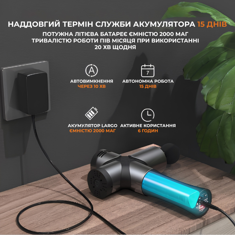 | Комплектація | Перкусійний масажер, насадки, зарядне обладнання, завісні ущільнювачі насадок, кейс, інструкція, гарантійний талон. |