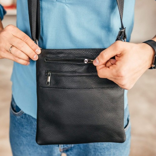 Ця чорна сумка замінить вам клатч чи барсетку. З цією шкіряною сумкою-месенджером усі ваші найближчі речі завжди будуть поряд.