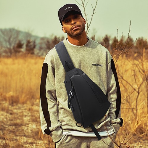 Рюкзак на одно плечо 905 вместительная с USB портом водонепроницаемая Black