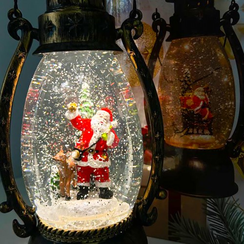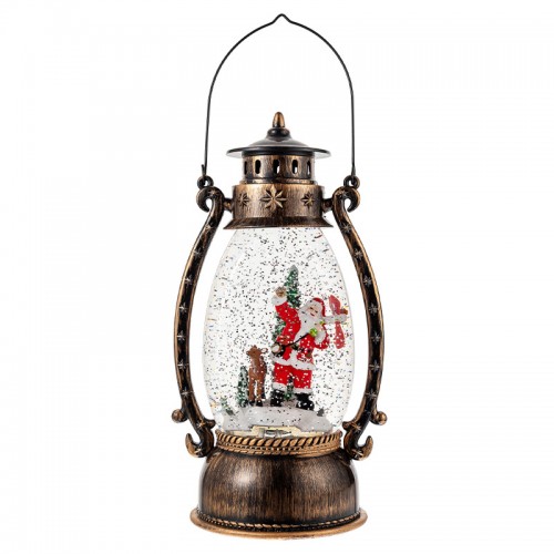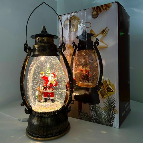 Классический дизайн - старинный фонарик с новогодней сценой внутри.