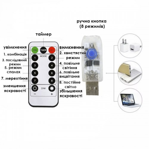 Светодиодная гирлянда ветка HS-0021 144 светодиода декоративное освещение USB с пультом управления 2,3 м