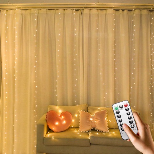 Светодиодная гирлянда штора YLX-0278 теплый свет USB с пультом управления декоративные украшение 3*1 м 100 LED