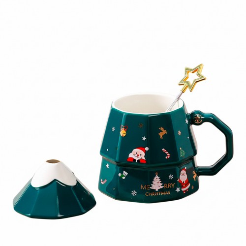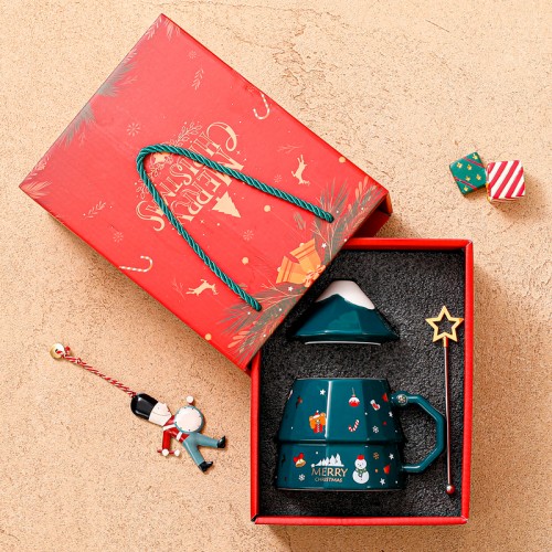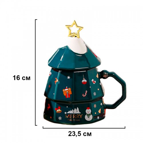 Рождественская чашка "Merry Christmass" Елка кружка в форме новогодней елки в подарочной упаковке Green