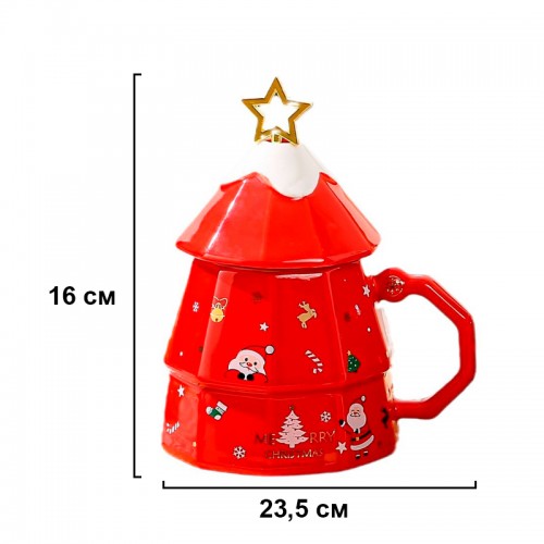 Рождественская чашка "Merry Christmass" Елка кружка в форме новогодней елки в подарочной упаковке Red